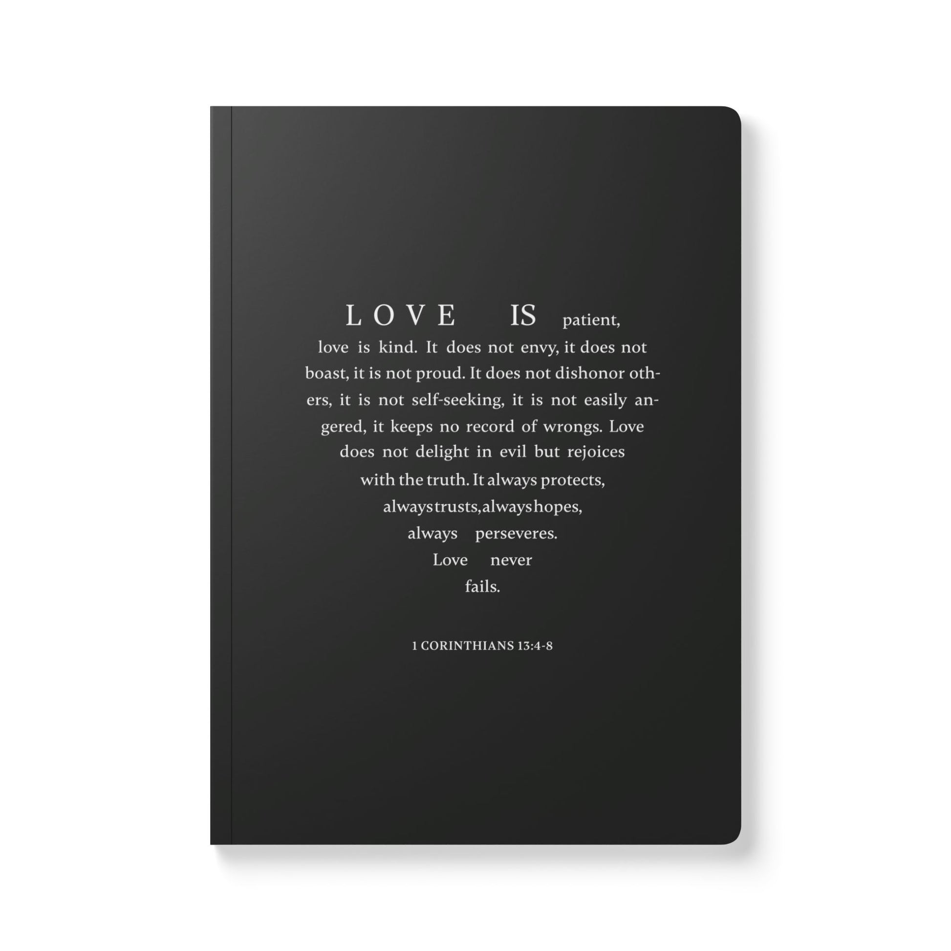 1 Corinthians 13:4-8 Soft Cover Soft Black Journal
