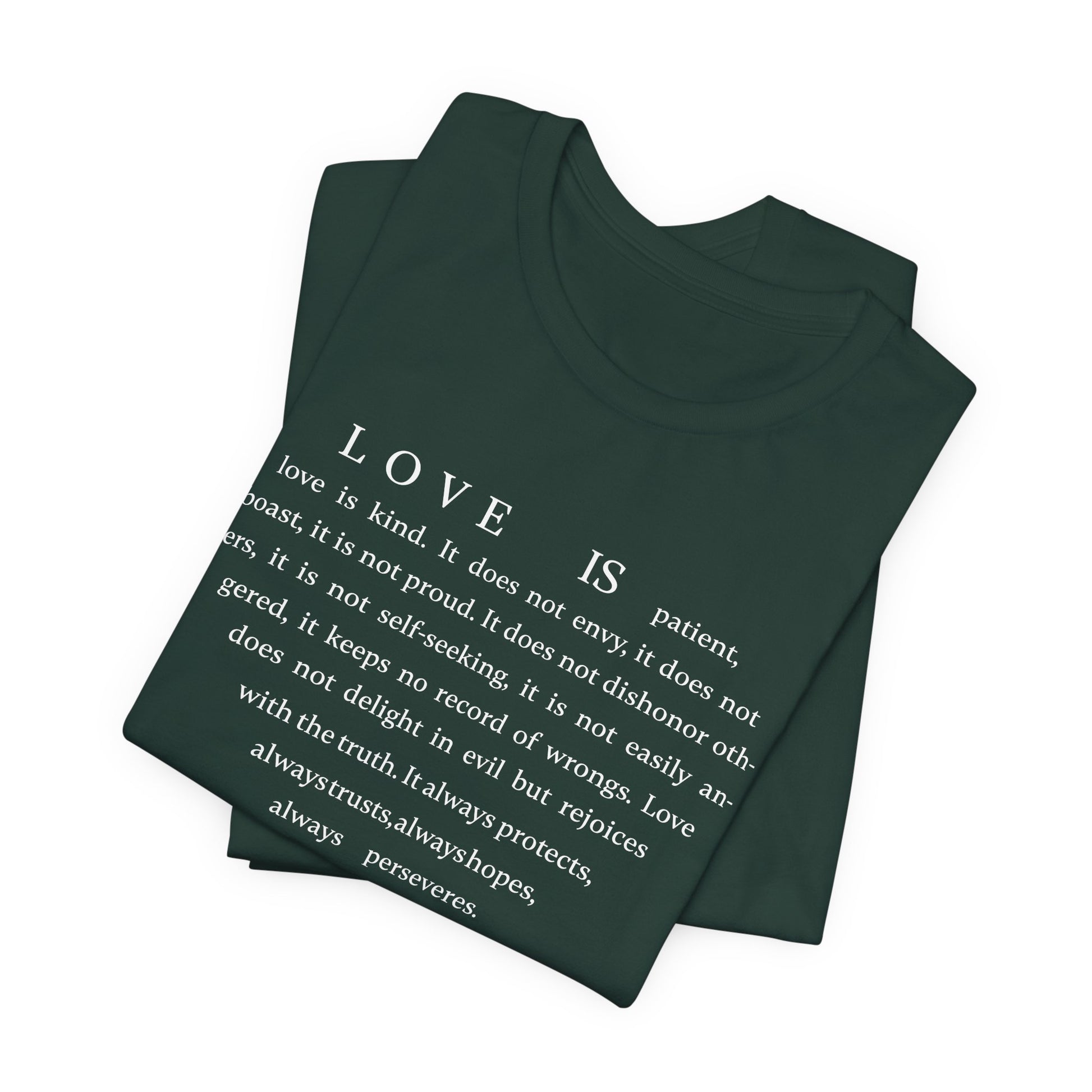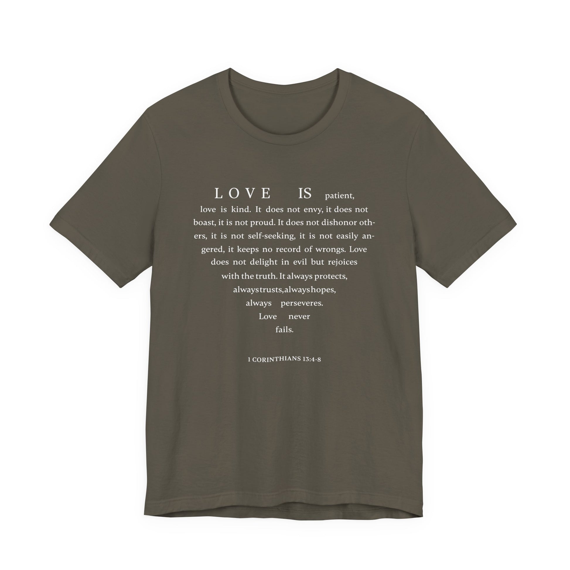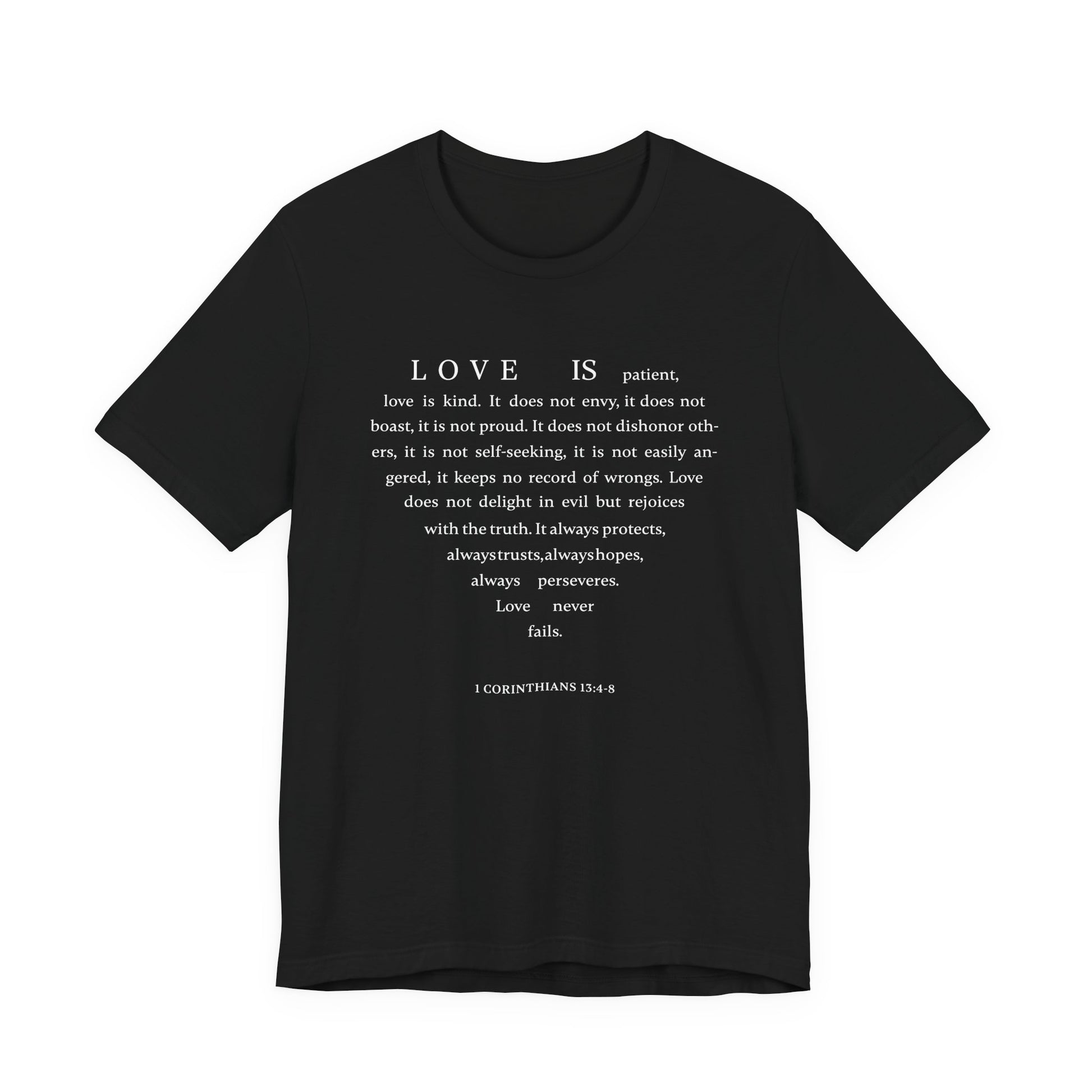 1 Corinthians 13:4-8 Tshirt — Bella Canvas 3001 Soft Cotton Crew